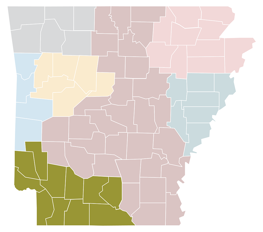 Calhoun, Columbia, Hempstead, Howard, Lafayette, Little River, Miller, Nevada, Ouachita, Sevier, Union